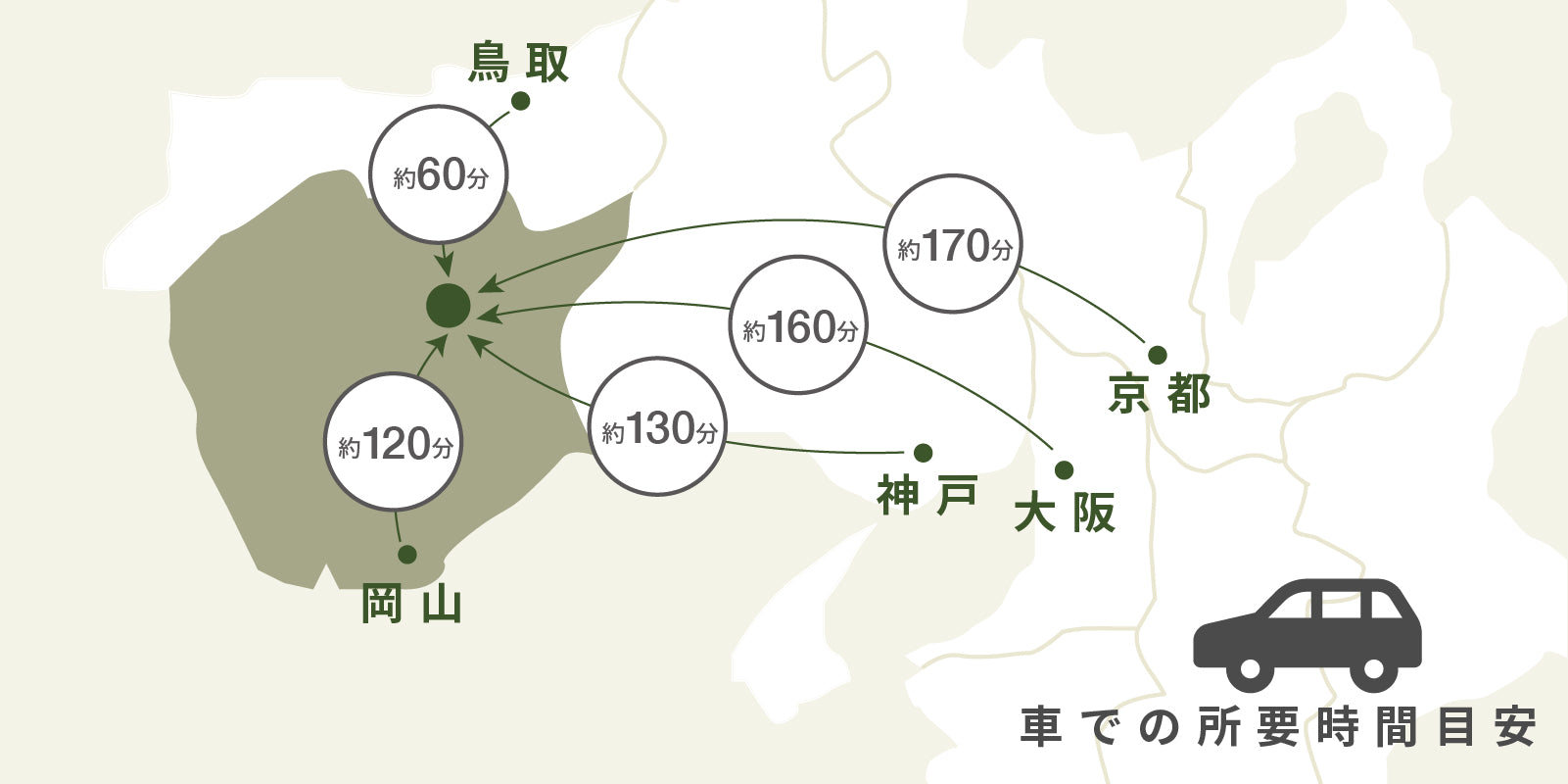 大阪から約160分 | 京都から約170分 | 神戸から約130分