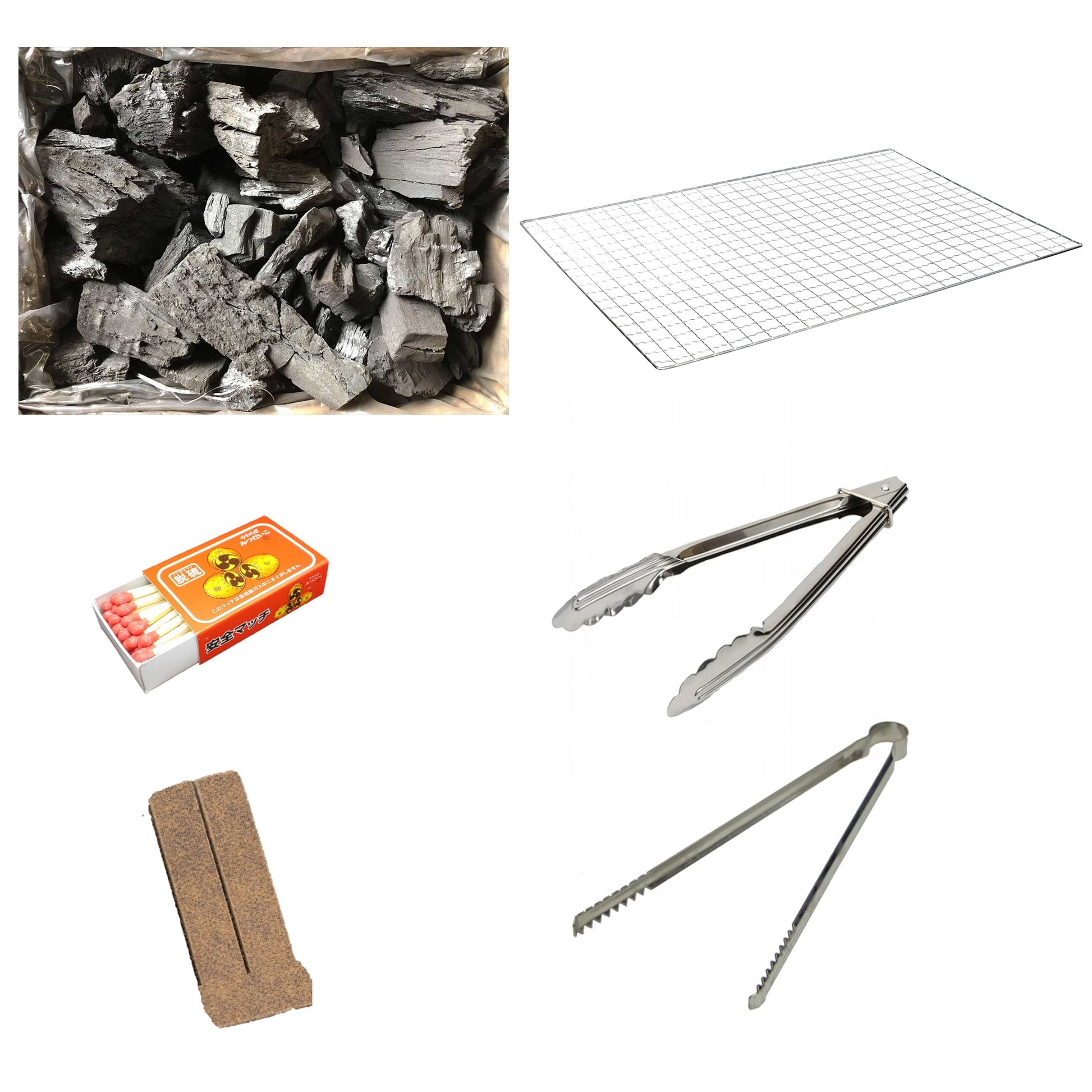 炭、網、着火剤、マッチ、食品用トング、火ばさみ