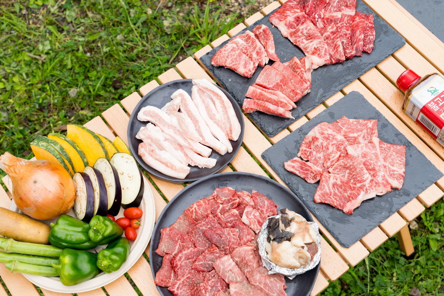 FOOD/食材人気精肉店の国産牛とおまかせ野菜盛りでちょっと贅沢なBBQを楽しみませんか?食材の目安:大人男性 250g 大人女性200g 【コテージ大満足プランの食材内容】 ◆レギュラーサイズ◆【セット内容】・国産牛ロース(約220g)・国産牛モモ(約320g)・国産牛カルビ(約160g)・国産豚ジャンボソーセージ3本(約300g)・外国産豚トロ(約100g)・焼肉のたれ1本・おまかせ野菜盛り合計1.15kg のボリューム 三世代やグループ利用の方にオススメです。 【コテージ小満足プランの食材内容】 ◆ハーフサイズ◆【セット内容】・国産牛ロース(約110g)・国産牛モモ(約160g)・国産牛カルビ(約80g)・国産豚ジャンボソーセージ2本(約200g)・外国産豚トロ(約75g)・焼肉のたれ1本・おまかせ野菜盛り合計625g カップルや大人2名に小さなお子様がいるご家族にオススメ。ご注文の品は、当日15時〜17時の間でお渡しさせていただきます。宿泊日当日に食材を買う手間も省け、直前まで食材も冷蔵庫で保管されているので安心して日中、釣りや川遊びができます。野菜は、季節によって内容品が異なります。※商品の特性上、3日前までご予約下さい。キャンセルについては4日前までにキャンセル手続きの完了をお願いいたします。3日前からは全額100%お客様負担となります。※商品のパッケージは予告なく変更する場合があります。※ こちらは店頭お受渡し商品です。(発送は致しません)